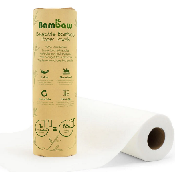 One roll of Bambaw’s bamboo paper towels has 20 perforated sheets and is equivalent to 65 single-use rolls.