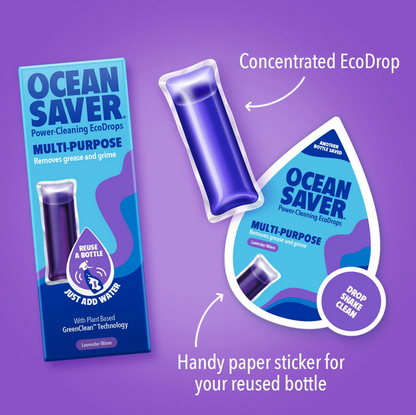 OceanSaver Cleaner Refill Drops – A variety of cleaning refills that can be put into your own reusable bottles. (1 drop/pod per pack)
